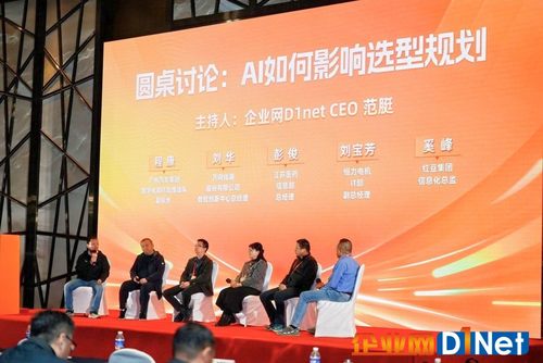 嘉宾分享之后,以“AI怎么样影响选型规划”为主题的圆桌讨论真正开始。讨论由企业网D1net CEO范脡主持,国机集团、广州汽车集团、江苏医药、恒力电机、红豆集团等企业的信息部高管参与了讨论。